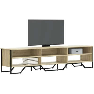 ManoManoGeneral description This TV cabinet with ample storage space is a practical and eye-catching addition to your living room or bedroom. It provides a modern design that keeps your magazines, books, DVDs, and multimedia devices well-organized and within reach. Technical specifications Colour: Sonoma oak Material: Engineered wood, metal Dimensions: 180 x 34 x 41 cm (W x D x H) Maximum load capacity (total): 60 kg Assembly required: Yes Usage The sturdy top is ideal for placing your TV and stereo systems or decorative items like vases or potted plants. Easy to clean with a damp cloth and requires less maintenance. Other information
