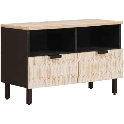 vidaXL TV Cabinet White Wash Finish 70 x 33.5 46 cm Solid Mango Wood