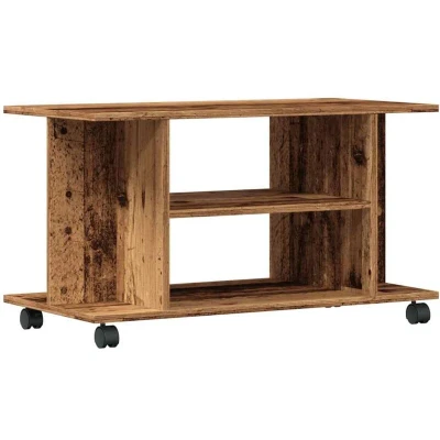 vidaXL tv cabinet with castors old wood engineered media stand open shelves 80x40x45cm for living room or bedroom