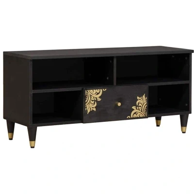 vidaXL TV Cabinet with Drawer Black 100 x 33 46 cm Solid Mango Wood