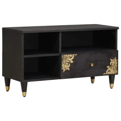 vidaXL TV Cabinet with Drawer Black 80 x 33 46 cm Solid Mango Wood