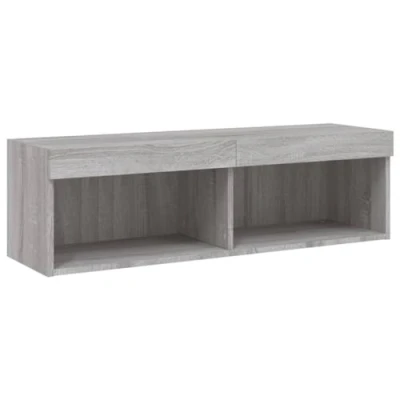 ManoManoGeneral description Featuring a trendy yet practical design, this TV cabinet with LED lights will become a focal point of your room. Made of high-quality engineered wood, it offers strength, stability, and moisture resistance, ensuring durability for long-term use. Technical specifications Colour: Grey sonoma Material: Engineered wood Dimensions: 100 x 30 x 30 cm (L x W x H) Assembly required: Yes Compatibility and accessories USB connector requires a certified 5V USB power source (not included). Installation Screws and plugs for wall mounting are not included; use screws and plugs suitable for your walls. Consult a professional if unsure about installation. Follow each step of the provided instructions carefully. Usage The TV unit offers ample storage space for organizing DVD players, receivers, disks, and other small items, keeping them well organized and within reach. The RGB LED lights allow you to change the color and adjust automatically, enhancing your entertainment experience.