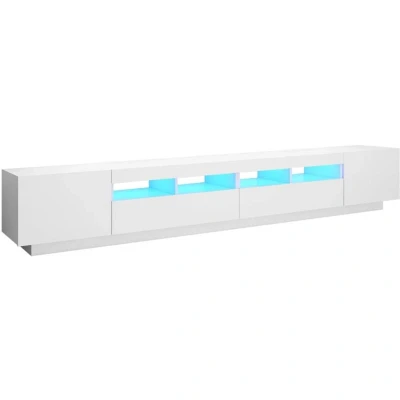 The sleek white finish of this TV cabinet adds a touch of modernity to your space. The integrated RGB LED lights enhance the overall aesthetic, providing multiple colour options that allow you to customise the ambiance of your room. With various menus available for colour changes, you can easily set the mood for any occasion, whether it's a casual movie night or a vibrant gaming session.