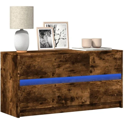 vidaXL TV Cabinet with LED Smoked Oak 100x34x50 cm Engineered Wood