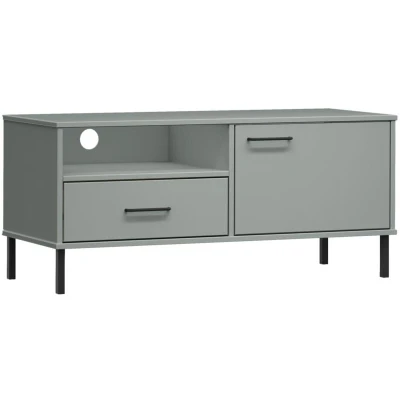Vidaxl tv Cabinet with Metal Legs Grey Solid Wood Pine oslo