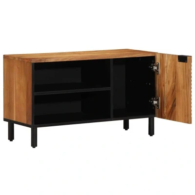 ManoManoGeneral description This industrial TV cabinet features a modern design with a textured, opaque surface that combines practicality with elegant lines. It serves as a stylish addition to your living room, offering a sophisticated way to store your media equipment. Technical specifications Colour: Brown Material: Solid acacia wood Overall dimensions: 80 x 31.5 x 46 cm (L x W x H) Weight: 14.25 kg Storage: With shelf Hinge door: 1 Indoor use only Assembly required: Yes EAN: 8721158448644 SKU: 4017771 Brand: vidaXL Usage Perfect for modern living spaces, this cabinet fits seamlessly into various room layouts. Its sleek style complements a wide range of interiors, making it suitable for both trendy flats and traditional homes. Effortless maintenance: Simply wipe with a damp cloth to remove dust and smudges, keeping it looking sharp. Other information