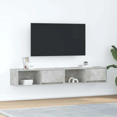 ManoManoGeneral description These TV wall cabinets are the perfect solution for your living space to maximize space and keep the floor areas uncluttered. The space-saving design allows for wall mounting, providing ample storage for magazines, books, DVDs, and multimedia devices while keeping the area clean. Technical specifications Colour: Concrete grey Material: Engineered wood Overall dimensions (each): 80 x 31 x 25.5 cm (W x D x H) Drawer dimensions: 37 x 23.5 x 19.5 cm (W x D x H) Overall max. weight capacity: 60 kg Max. weight capacity per shelf: 20 kg Max. weight capacity per drawer: 5 kg With 1 drawer and 1 shelf Assembly required: Yes Delivery contains: 2 x TV cabinet Other information