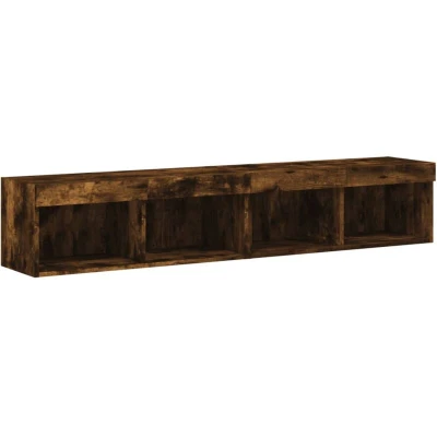 ManoManoGeneral description Featuring a trendy yet practical design, these TV cabinets with LED lights will become a focal point of your room. Made of high-quality engineered wood, these TV stands are sturdy, durable, and resistant to moisture. They offer ample storage space for keeping your DVD players, receivers, disks, and other small items organized and within reach. The RGB LED lights allow you to change the color of the lights and adjust them automatically, enhancing your entertainment experience. Additionally, the wall-mounted design maximizes your floor space and keeps the area clean. Technical specifications Colour: Smoked oak Material: Engineered wood Dimensions (each): 80 x 30 x 30 cm (L x W x H) Assembly required: Yes Power: DC 5V (USB power source not included) Compatibility and accessories USB connector requires a certified 5V USB power source (not included) Screws and plugs for wall mounting are not included; use suitable screws and plugs for your walls Installation Please read