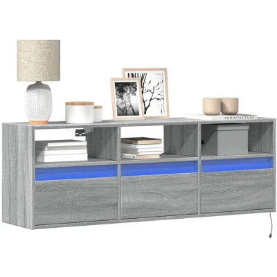 vidaXL TV Wall Cabinet Floating Grey Sonoma Engineered Wood Unit with RGB LED Lights, 130x31x45 cm, 3 Drawers & Compartments, Space Saving Design Ideal for Living Rooms, Lounge Areas