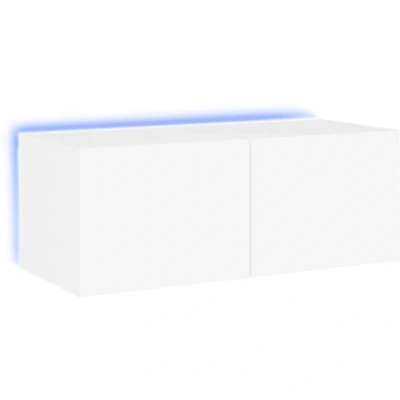 vidaXL TV Wall Cabinet White Engineered Wood mounted with RGB LED Lights & Spacious Storage 80x35x31 cm for Living Room