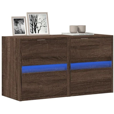 vidaXL TV Wall Cabinets with LED Lights 2 pcs Brown Oak 41x31x45 cm