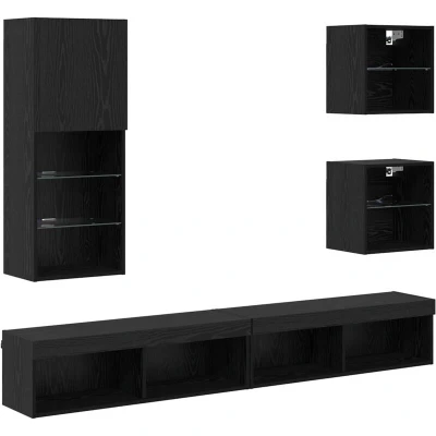 vidaXL TV Wall Units with LED mounted 5 pcs Black Oak Engineered Wood