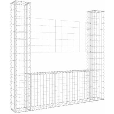 vidaXL U shape Gabion Basket with 2 Posts Iron 140x20x150 cm