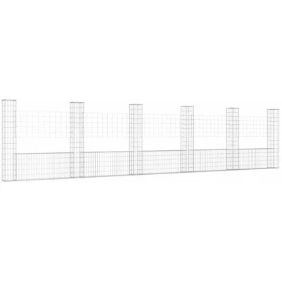vidaXL U shape Gabion Basket with 6 Posts Iron 620x20x150 cm