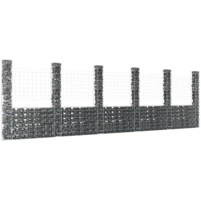General description This U-shape gabion basket is an excellent choice for both residential and commercial landscape design. It provides a simple solution for constructing a robust retaining wall to block wind and precipitation. Made from rustproof and weather-resistant iron, this gabion is stable and durable, featuring a mesh grid created by welding transverse and longitudinal wires at each intersection. With a wire diameter of 3.5 mm, it is designed to be filled with rocks or gravel for quick and easy construction, making it ideal for garden projects and a striking addition to your outdoor space. Technical specifications Colour: Silver Material: Iron Dimensions: 620 x 20 x 200 cm (L x W x H) Mesh size: 10 x 5 cm (L x W) Wire diameter: 3.5 mm Includes 6 posts Assembly required: Yes Other information Please note that stones are not included in delivery. Attention! Metal wires can be pointed and sharp-edged! Wear safety shoes and protective gloves when setting up!