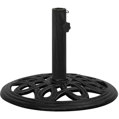 VidaXLThis solid umbrella base serves as a firm and sturdy base for your umbrella and will keep it in place. The durable cast iron material ensures excellent stability. The supplied adapter is suitable for umbrella poles with diameter of 35, 38 or 48 mm. The detailed scrollwork and charming floral pattern will add a classy accent to any garden or outdoor space.
