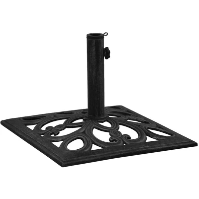 VidaXLThis solid umbrella base serves as a firm and sturdy base for your umbrella and will keep it in place. The durable cast iron ensures excellent stability. The supplied adapter is suitable for umbrella poles with diameter of 35, 38 or 48 mm. The detailed scrollwork and charming floral pattern will add a classy accent to any garden or outdoor space.