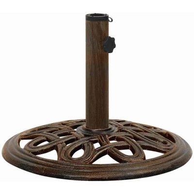 VidaXLThis solid umbrella base serves as a firm and sturdy base for your umbrella and will keep it in place. The durable cast iron material ensures excellent stability. The supplied adapter is suitable for umbrella poles with diameter of 35, 38 or 48 mm. The detailed scrollwork and charming floral pattern will add a classy accent to any garden or outdoor space.