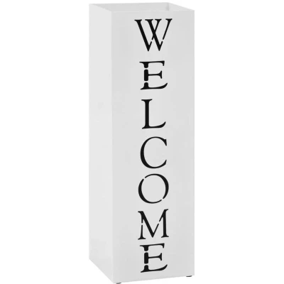 General description This striking, modern umbrella stand is both practical and decorative, designed for holding umbrellas, walking sticks, trekking poles, and more. It features a removable plastic drip tray that catches any residual water, protecting your floors. Technical specifications Colour: White Material: Powder-coated steel Dimensions: 15.5 x 15.5 x 48.5 cm (L x W x H) With a removable plastic drip tray Easy to clean Other information