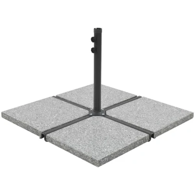 General description The solid umbrella weight plate provides a firm and sturdy base for holding your parasol, preventing it from tipping over or being blown away. Made of strong granite and weighing 25 kg, this base weight is extremely stable, ensuring your parasol remains secure even on windy days. Please note that this is only a 1/4 part of a full weight plate, and it is recommended to buy 4 pieces to create a complete set. Technical specifications Colour: Grey Material: Granite Base size: 47 x 47 x 4.5 cm (L x W x H) Weight: 25 kg (with a tolerance of +/- 5%) Delivery includes 1 piece of square plate SKU: 45070 Other information