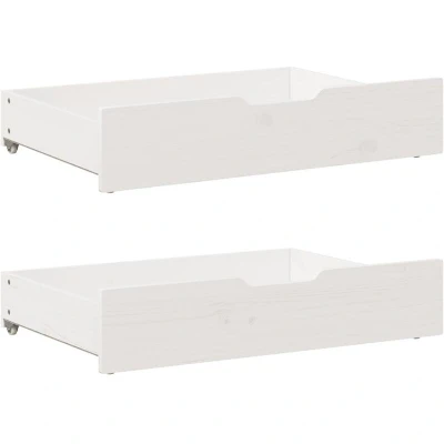 vidaXL Under Bed Drawers 2pcs Storage Boxes, White Pine Wood, 80x55x16 cm, 20kg Capacity Each Sliding Drawer with Wheels, Bedroom Solution