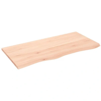 ManoManoGeneral description This wooden bathroom countertop is a perfect choice for those planning to renovate their countertops at home. Made from solid oak wood, it features a beautiful natural medium brown color and a dense grain, contributing to its unique look. This versatile countertop can be used not only as a bathroom vanity top but also as a shelf, cabinet top, desk top, or table top. Technical specifications Material: Solid oak wood (untreated) Dimensions: 100 x 50 x 2 cm (L x W x T) Max. load capacity: 40 kg Features live edge SKU: 3156035 Other information As a natural product, wood may show knots and imperfections that are filled with black fillings for a smooth appearance.