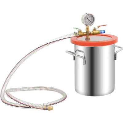 VidaXLThis stainless steel vacuum chamber is an excellent choice for degassing operations, vacuum encapsulation and more. Premium material: The stainless steel material ensures the vacuum tool's resistance to wear and pressure.Better observation: The transparent acrylic lid does not bend in vacuum operations, allowing a better view of the whole degassing process. The oil vacuum gauge and shock-resistant vacuum meter are also equipped for better monitoring.Reliable degassing: The degassing chamber is well-sealed to prevent leaks and provide a safe, reliable means for degassing.