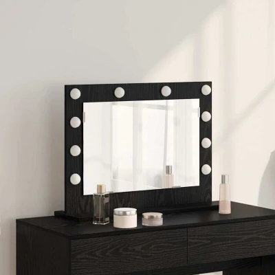 vidaXL Vanity Mirror with LED Lights Black Oak 60x45x18 cm