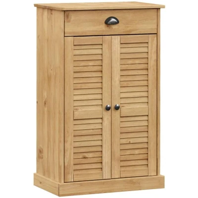 VidaXLKeep your shoes away from dust and clutter to create a tidy environment for your home with this elegant shoe cabinet! Solid pine wood: Solid pine wood is a beautiful natural material. Pine wood has a straight grain, and the knots give the material its signature, rustic look. Made of solid pine wood, the shoe storage is durable and sturdy.Ample storage space: This shoe shelf is designed with 2 shelves and 1 drawer to store and keep your shoes and small things well organised.Easy to maintain: The shoe storage cabinet is easy to clean with a damp cloth and requires less maintenance.Metal handles and knobs: The shoe cupboard comes with metal handles and knobs that make it easy to open and close the cabinet, while adding to the extra beauty. Warning:To prevent it being overturned, this product must be used with the provided wall attachment device.