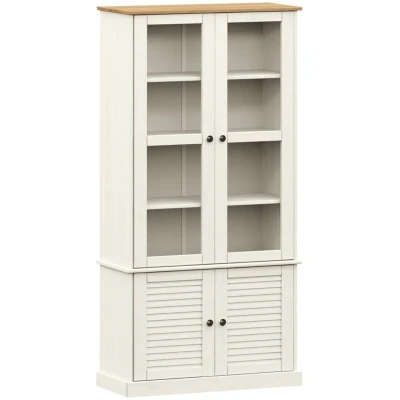 VidaXLThis wooden glass display cabinet provides an ideal solution for organising your collections and will add a touch of rustic charm to your interior. Solid pine wood: Solid pine wood is a beautiful natural material. Pine wood has a straight grain, and the knots give the material its signature, rustic look. Made of solid pine wood, the display cabinet is durable and sturdy.Ample storage space: Equipped with shelves, this cabinet with glass doors provides ample space for keeping your collection of cups, dishes, and small decorative items in good order.Easy to maintain: The glass cabinet is easy to clean with a damp cloth and requires less maintenance.Metal knobs: The display cabinet with glass doors comes with metal knobs that make it easy to open and close the shelf cabinet while adding to the extra beauty. Warning:To prevent it being overturned, this product must be used with the provided wall attachment device.