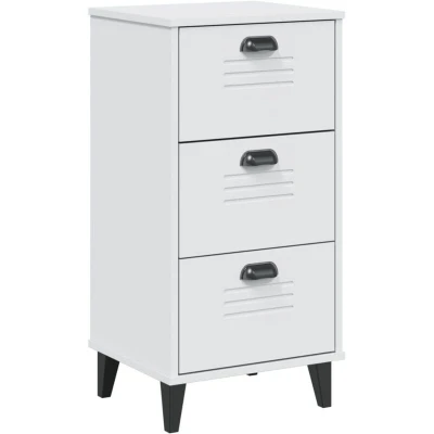 vidaXL VIKEN Solid Pine Wood Bedside Cabinet White, 3 Drawers, Plastic Handles, Wooden Legs, Industrial Style, Ample Storage, Easy Maintenance