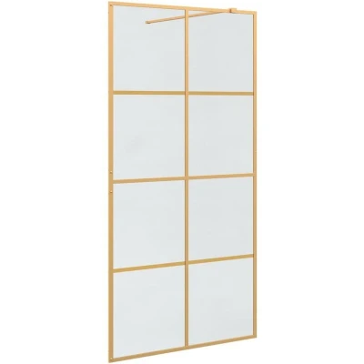 vidaXL Walk in Shower Wall Gold 100 x 195 cm Tempered Glass
