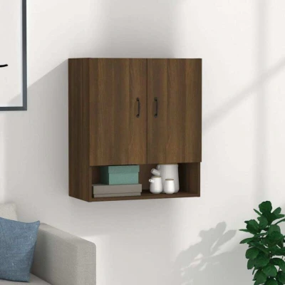 ManoManoGeneral description This handy wall cabinet can be easily attached to the wall, making it a decorative and practical extension to your home decor. The engineered wood is of exceptional quality with a smooth surface, providing strength, stability, and resistance to moisture. The floating cabinet features 2 doors and 1 compartment, offering ample storage space for organizing items like a media player, magazines, and more. Its wall-mounted design ensures it doesn't take up any floor space, and its simple design complements any room and furniture style, adding a touch of elegance and vibrance to your home. Technical specifications Colour: Brown oak Material: Engineered wood Dimensions: 60 x 31 x 70 cm (W x D x H) Maximum load capacity (total): 60 kg Installation Screw(s) and plug(s) for inside the wall are not included. Seek and use screw(s) and plug(s) suitable for your walls. If you are uncertain, seek professional advice. Read and follow each step of the instruction carefully. Each