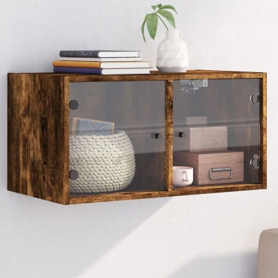 ManoManoGeneral description This wall cabinet is stunning and elegant. Not only is it an excellent solution for your chores and decorations, but it is also the perfect decoration for your empty walls, turning them into designer walls. Technical specifications Colour: Smoked oak Material: Engineered wood, glass Dimensions: 68.5 x 37 x 35 cm (W x D x H) Max. load capacity: 80 kg Load capacity of compartment: 40 kg Assembly required: Yes Installation Screws and plugs for inside the wall are not included. It is advised to find and use screws and plugs suitable specifically for your walls. If you're not sure, you can consult with a professional. Please read and follow each step of the instructions. Usage The hanging cabinet boasts compartments, enabling you to place items such as books and keep them neatly organized and within reach. You can mount the storage cabinet on the workplace wall for convenient storage of tools or other miscellaneous items. The practical glass doors allow you to see