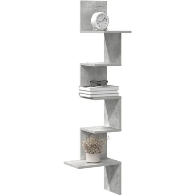 vidaXL Wall Corner Shelf Concrete Grey 32x32x127,5 cm Engineered Wood