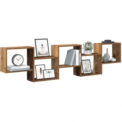 ManoManoGeneral description This wall cube shelf is designed to be both a decorative and practical addition to your home decor. It features 5 compartments, providing ample storage space for organizing your daily essentials while being wall-mounted to save floor space. Technical specifications Colour: Old wood Material: Engineered wood Overall dimensions: 184 x 18 x 44 cm (W x D x H) Number of compartments: 5 Maximum weight capacity: 60 kg Assembly required: Yes Installation Screws and plugs for mounting are not included; it is recommended to use screws and plugs suitable for your specific wall type. Consult a professional if unsure about installation. Follow the provided instructions carefully during assembly. Usage Ideal for use in various settings such as the living room, bedroom, and more. Easy to clean with a damp cloth due to its smooth surface. Other information