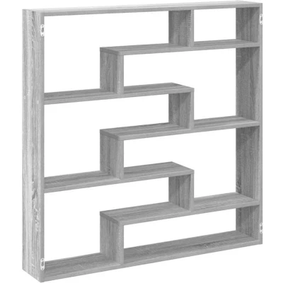 ManoManoGeneral description This wall cube shelf is designed to be both a decorative and practical addition to your home decor. It features 7 compartments that provide ample storage space for organizing daily essentials while being wall-mounted to save floor space. Technical specifications Colour: Grey sonoma Material: Engineered wood Overall dimensions: 100 x 18 x 100 cm (W x D x H) Dimensions of each compartment: 24.5/31/38.5 x 18 x 23 cm (W x D x H) Number of compartments: 7 Maximum weight capacity: 60 kg Assembly required: Yes Installation Screws and plugs for mounting are not included; it is recommended to use screws and plugs suitable for your specific wall type. Consult a professional if unsure about installation. Follow the provided instructions carefully during assembly. Usage Ideal for use in various rooms such as the living room and bedroom. Easy to clean with a damp cloth due to its smooth surface. Other information