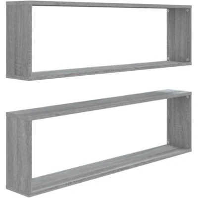 ManoManoGeneral description These wall cube shelves are designed to be mounted on the wall, adding a stylish touch to any room. Made from high-quality engineered wood, they offer durability and a smooth surface, making them both functional and decorative. Technical specifications Material: Engineered wood Colour: Grey sonoma Dimensions: 100 x 15 x 30 cm (W x D x H) Delivery contains: 2 x Wall shelf Installation Screws and plugs for wall mounting are not included; use suitable ones for your walls. Each product comes with an assembly manual for easy installation. If uncertain, seek professional advice. Read and follow each step of the instruction carefully. Usage These wall-mounted shelves feature open compartments, perfect for storing and displaying books, awards, collectibles, ornaments, and more. They can easily transform an empty wall into a design feature. Other information