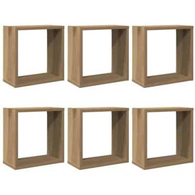 vidaXL Wall Cube Shelves 30x15x30 cm Artisan Oak Floating Storage 6 Pcs for Living Room/Bedroom Engineered Wood