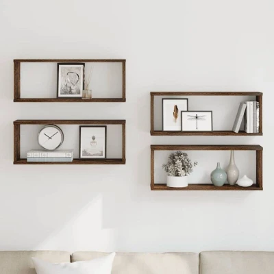 vidaXL Wall Cube Shelves 4 pcs Smoked Oak 60x15x23 cm Engineered Wood