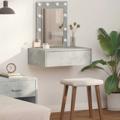 vidaXL Wall Hanging Dressing Table with LED Lights Concrete Grey