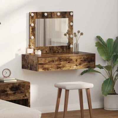 vidaXL Wall Hanging Dressing Table with LED Lights Smoked Oak