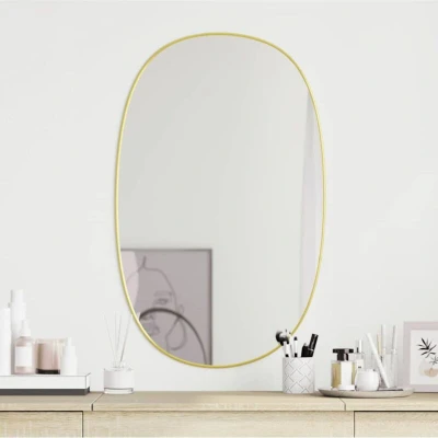 ManoManoGeneral description Add a touch of minimalistic aesthetic to your home decor with this practical wall mirror. This vanity mirror features a durable glass surface and a PVC frame, ensuring stability and longevity. Its wall-mounted design makes it especially suitable for rooms with limited space, while the clear glass provides a beautiful and natural reflection. The wall-mounted mirror can enhance the decor of various spaces, including your bedroom, wardrobe, hallway, living room, and bathroom. Technical specifications Colour: Gold Material: Glass, PVC Size: 80 x 50 cm (L x W) Glass thickness: 4 mm Other information