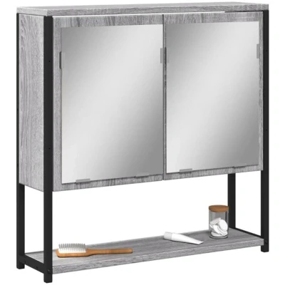 vidaXL Wall Mounted Bathroom Mirror Cabinet with Storage in Grey Sonoma Engineered Wood Washroom Vanity Reflective Glass