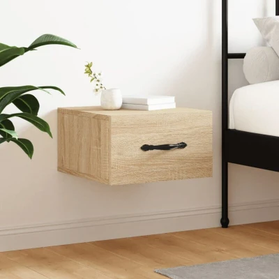 ManoManoGeneral description This wall-mounted bedside cabinet is designed to be both a decorative and practical addition to your home decor. It offers ample storage space for organizing daily essentials while enhancing your living space. Technical specifications Colour: Sonoma oak Material: Engineered wood Dimensions: 35 x 35 x 20 cm (W x D x H) Assembly required: Yes SKU: 829810 Installation Screws and plugs for wall mounting are not included. It is recommended to use screws and plugs suitable for your specific wall type. If unsure, consult a professional for installation assistance. Follow the provided instructions carefully during assembly. Usage The floating bedside cabinet does not occupy floor space, making it ideal for smaller rooms. Use the top surface to display photos, decorations, or flowers to personalize your space. Other information
