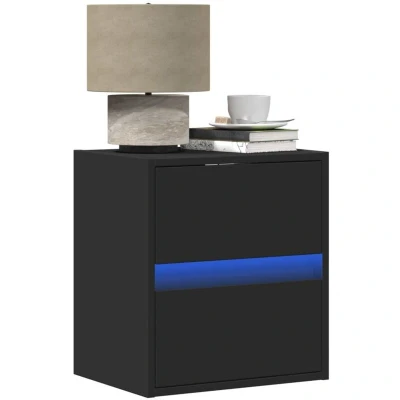 vidaXL Wall mounted Bedside Cabinet with LED Lights Black
