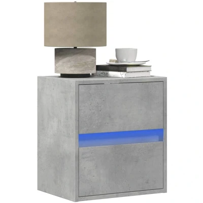 Vidaxl Wall mounted Bedside Cabinet with led Lights Concrete Grey