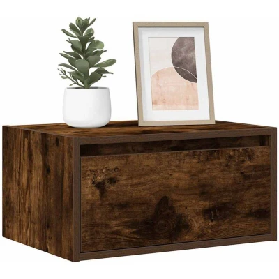 ManoManoGeneral description Upgrade your bedroom with this wall-mounted bedside cabinet featuring LED lights. It easily complements any furniture style in your home, providing a modern touch while maximizing your floor space. Technical specifications Colour: Smoked oak Material: Engineered wood Overall dimensions: 51 x 35.5 x 25 cm (W x D x H) Drawer dimensions: 47 x 28.5 x 19 cm (W x D x H) Power: DC 5V (USB power source not included) Assembly required: Yes Compatibility and accessories USB connector requires a certified 5V USB power source (not included) Screws and plugs for wall mounting are not included; use suitable screws and plugs for your walls Installation Follow the provided instructions carefully for proper installation Consult a professional if unsure about the wall mounting process Usage Ample storage space for magazines, books, glasses, and other bedtime essentials RGB LED lights can be adjusted for a personalized light show, allowing customization of modes, colours, and