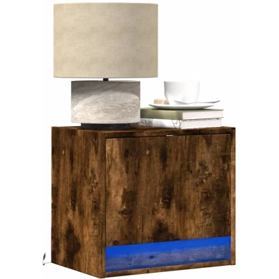 vidaXL Wall mounted Bedside Cabinet with LED Lights Smoked Oak