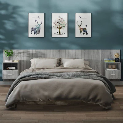 vidaXL Wall mounted Bedside Cabinets 2 pcs Grey Sonoma